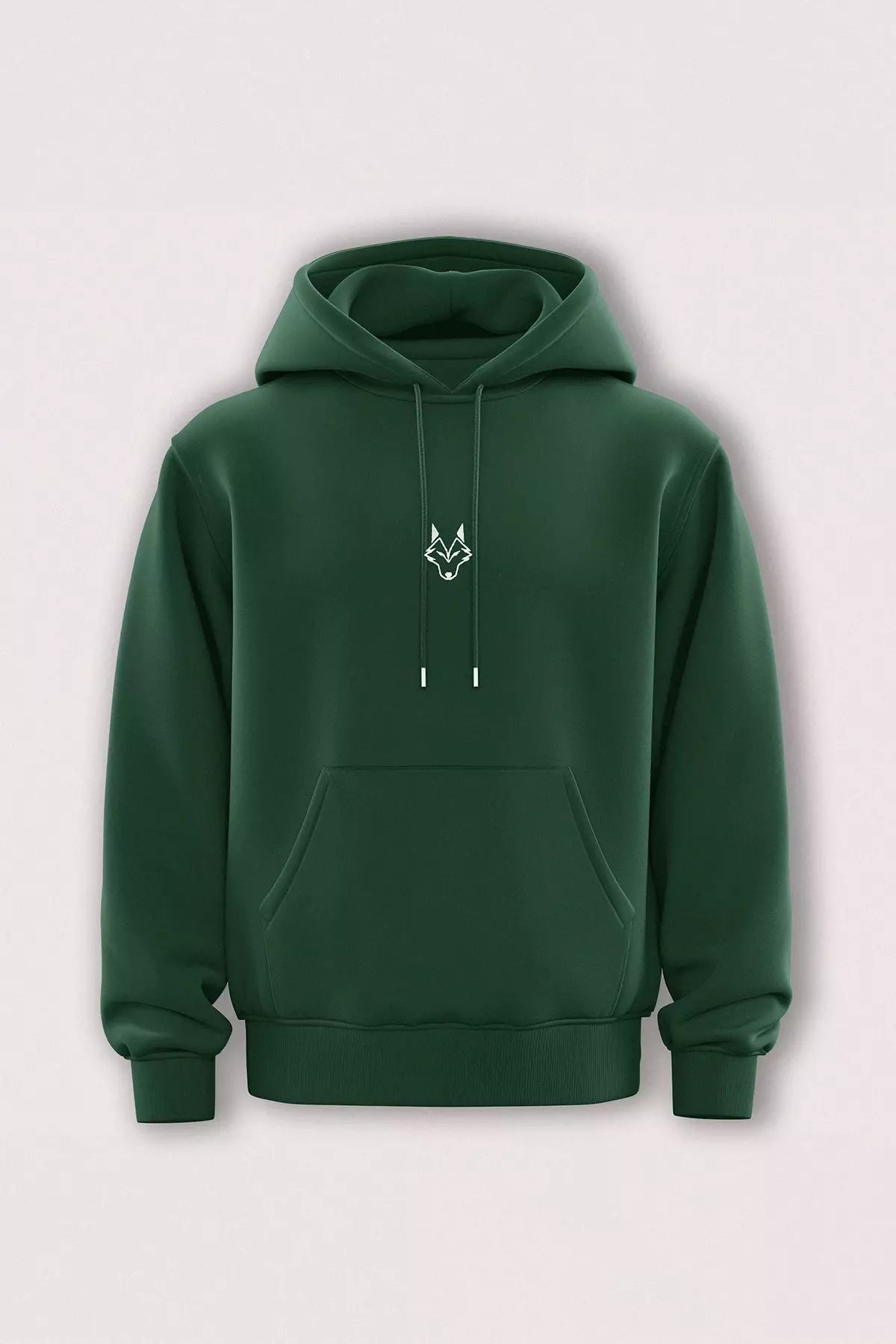 Khaki Regular/Normal Cut Hooded Polar Fleece Inside Wolf Embroidered Sweatshirt