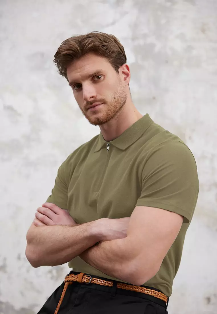 TrendyolKhaki Regular/Normal Cut Zippered 100% Cotton Polo Neck T-Shirt1439.001097.00
