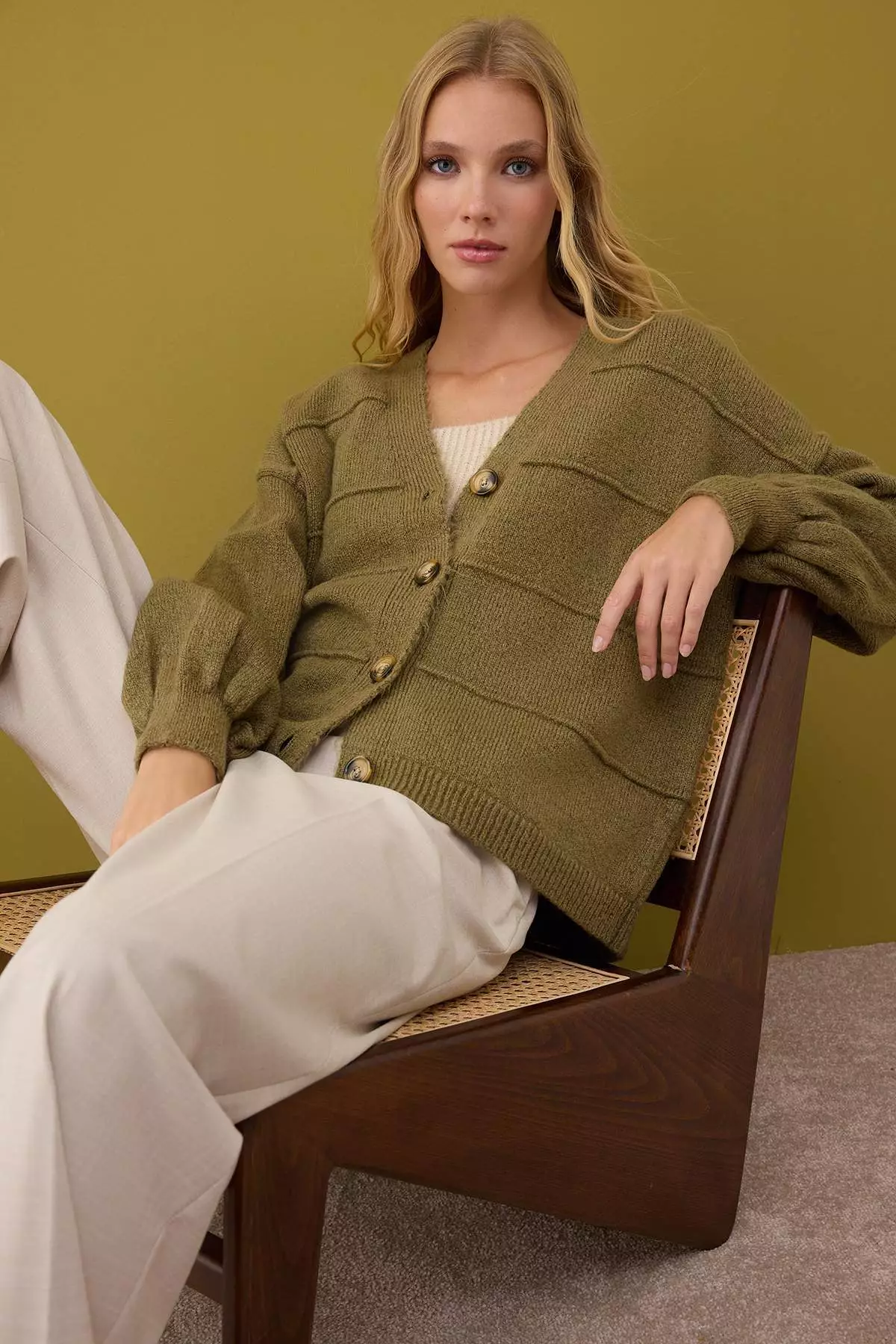TrendyolKhaki Soft Texture Wide Pattern Knitwear Cardigan1899.001367.00
