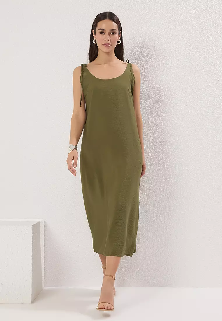 TrendyolKhaki Straight Cut Slit Strap Midi Woven Dress TWOSS23EL004136149.001370.90