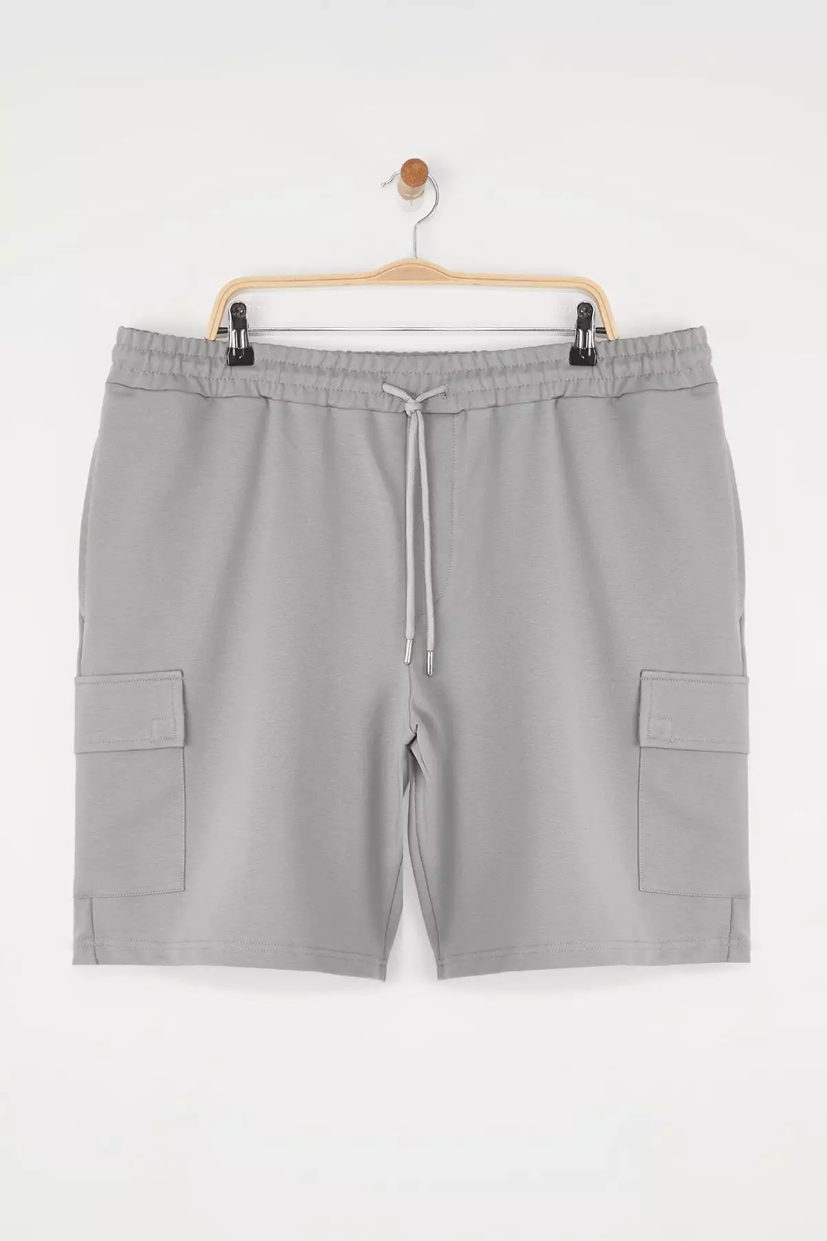 TrendyolLarge Size Gray Oversize/Wide Cut Hidden Cord Elastic Waist Cargo Pocket Labeled Shorts TMNSS25AP000056159.001508.90