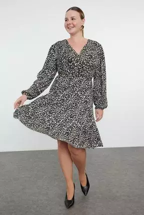 TrendyolLeopard Print A-Line Mini Knitted Dress - Plus Size Tbbaw23Ah000031919.001448.90