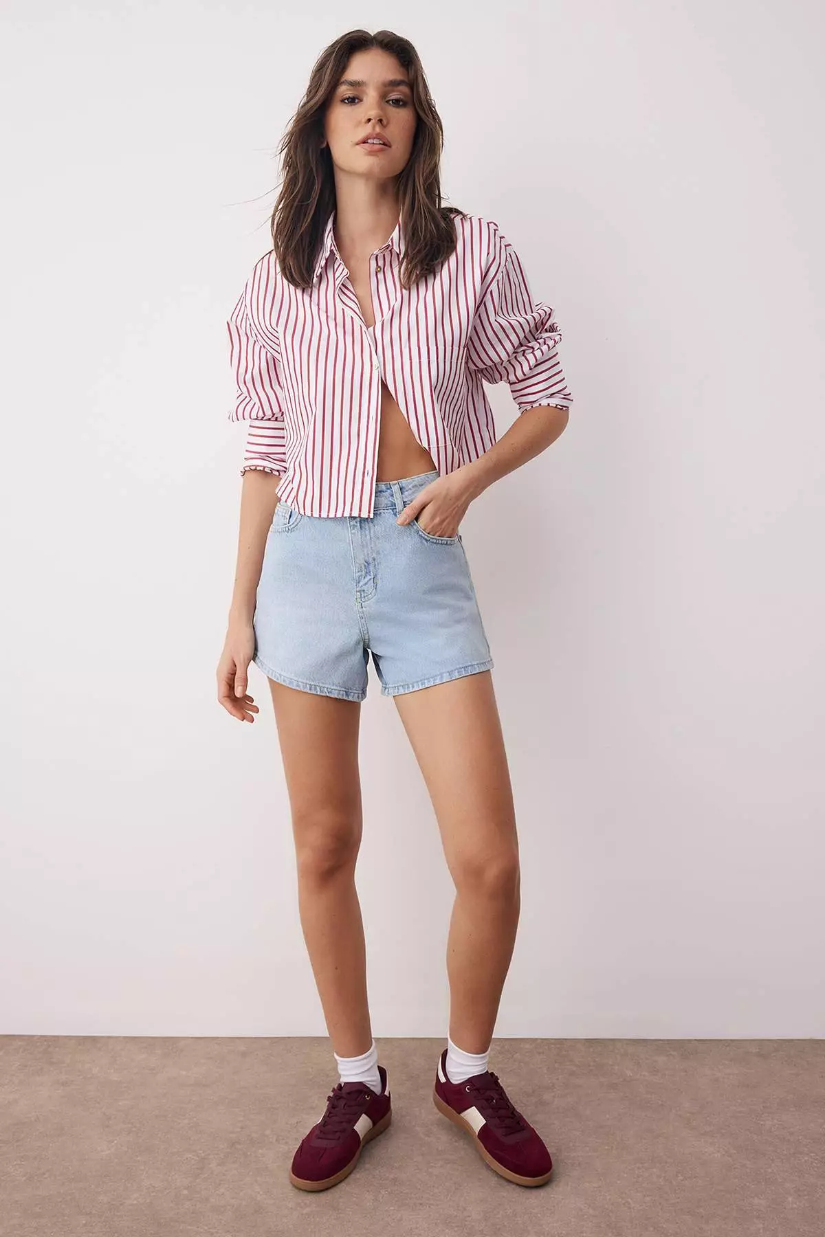 TrendyolLight Blue High Waist City Boy Denim Shorts Twoss25Sr001782099.001234.00