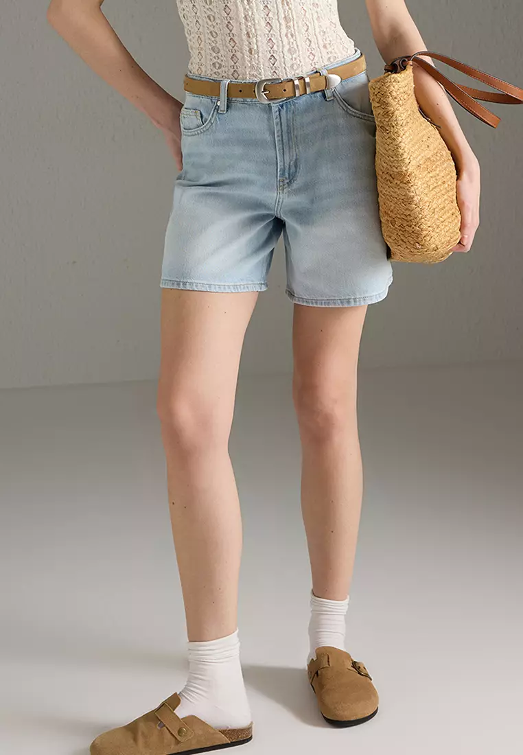 TrendyolLight Blue Normal Waist Denim Bermuda TWOSS25SR001802339.001501.00
