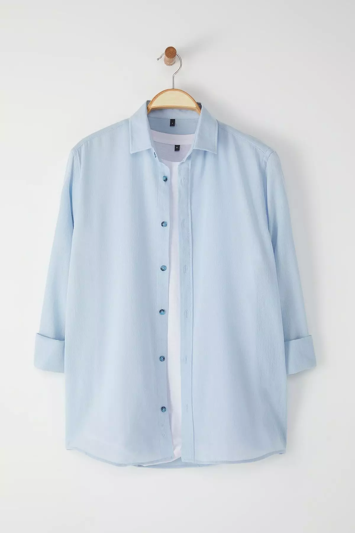 TrendyolLight Blue Regular Fit Epaulette Wrinkled Effect Linen Look Shirt TMNSS23GO000612299.001851.00
