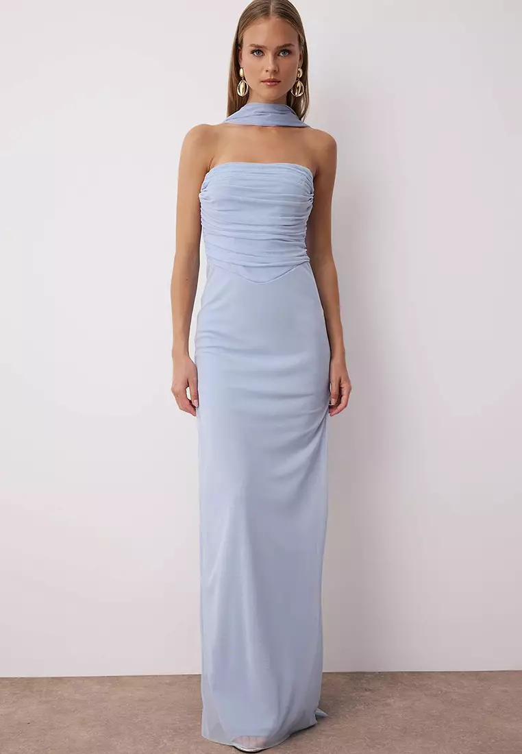 TrendyolLight Blue Tulle Knitted Maxi Evening Dress With Scarf Evening Homecoming Dress3299.002933.00