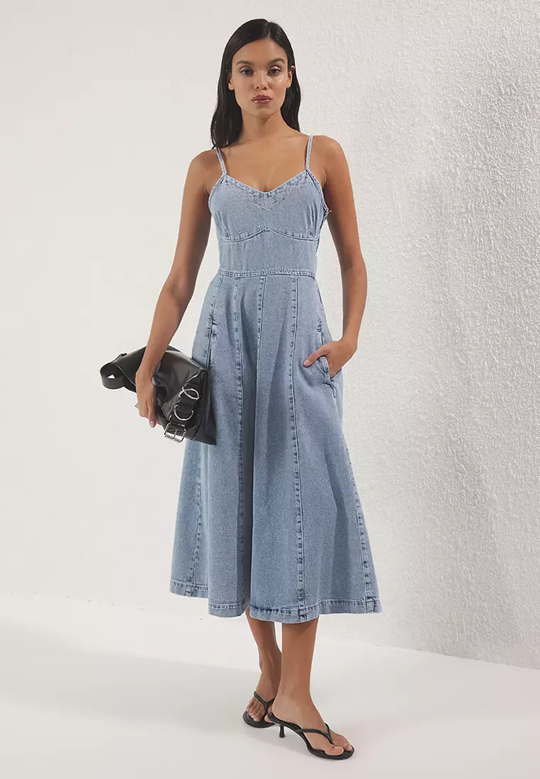 TrendyolLight Blue V-Neck Strap Midi Denim Dress Twoss25El0073711359.00