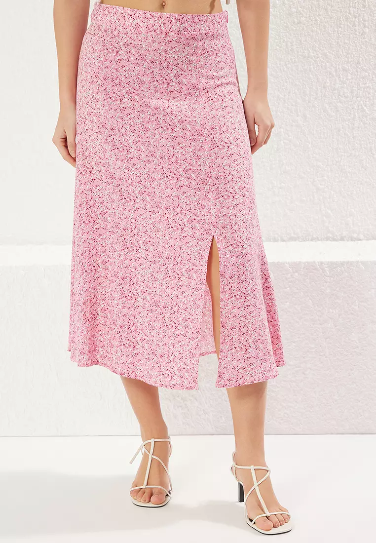 TrendyolLight Pink Slit Detail Floral Patterned Fabric Midi Woven Skirt2299.001507.00