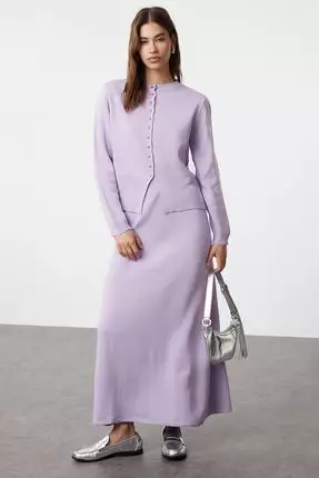 TrendyolLilac Knitwear Cardigan And Skirt Set - Button Detailed Tctaw25Us000143359.002963.90