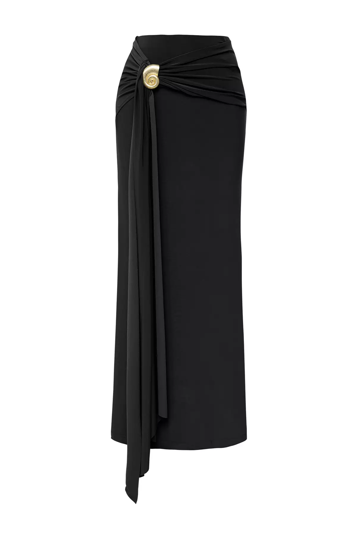 Limited Edition Black Bodysitting Accessory Detailed Knitted Long Skirt