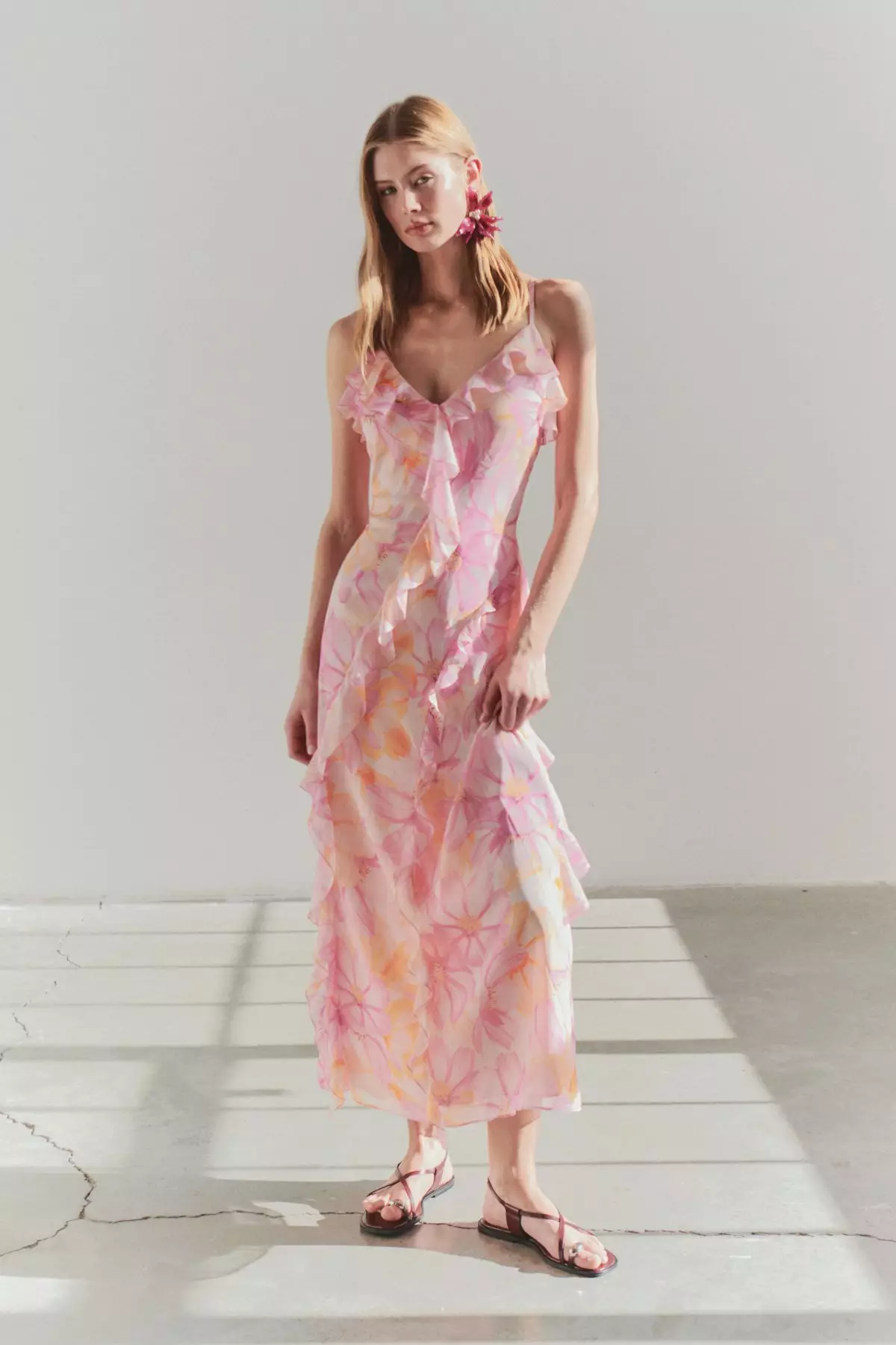 Limited Edition Pink Ruffle Maxi Woven Dress TWOSS25EL00517