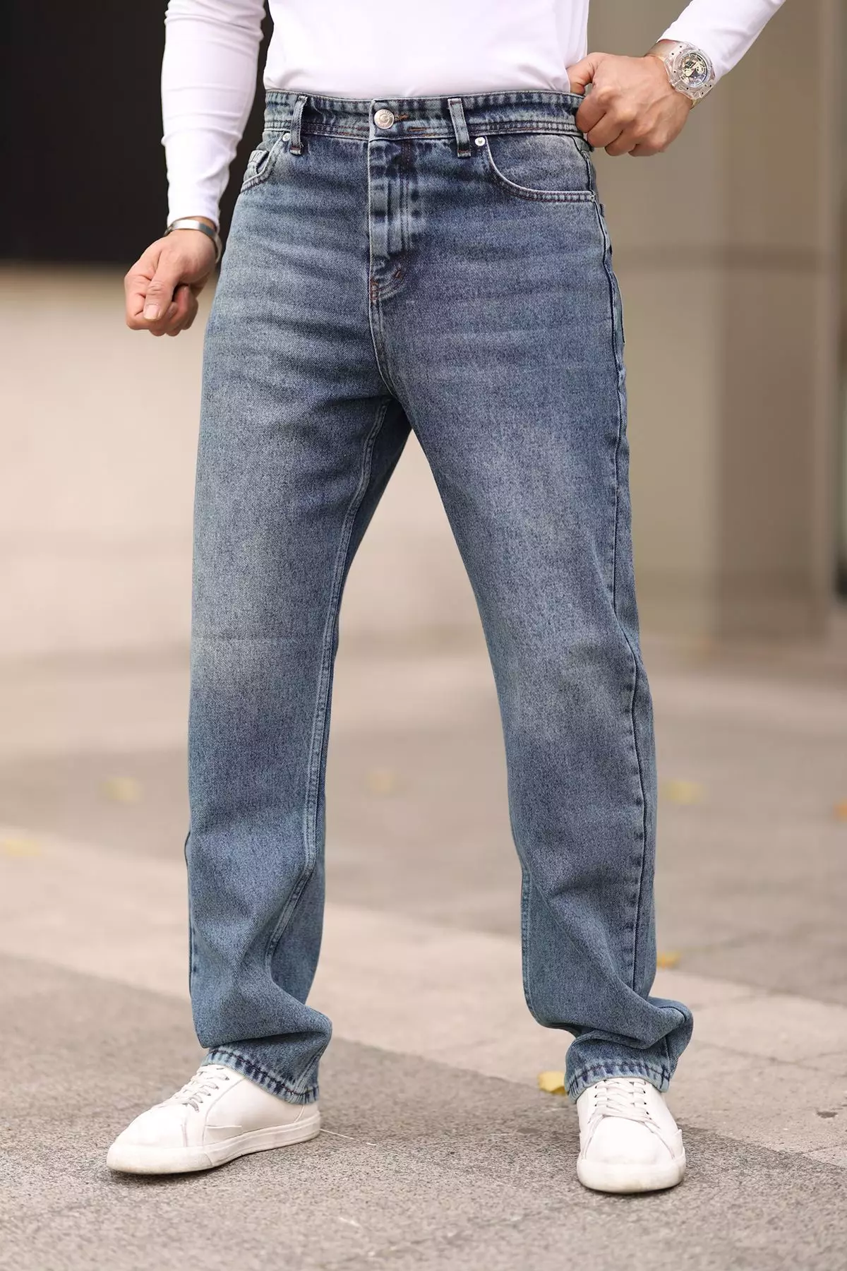 Medium Blue 100% Cotton Baggy Fit Jeans Trousers TMNAW24JE00027