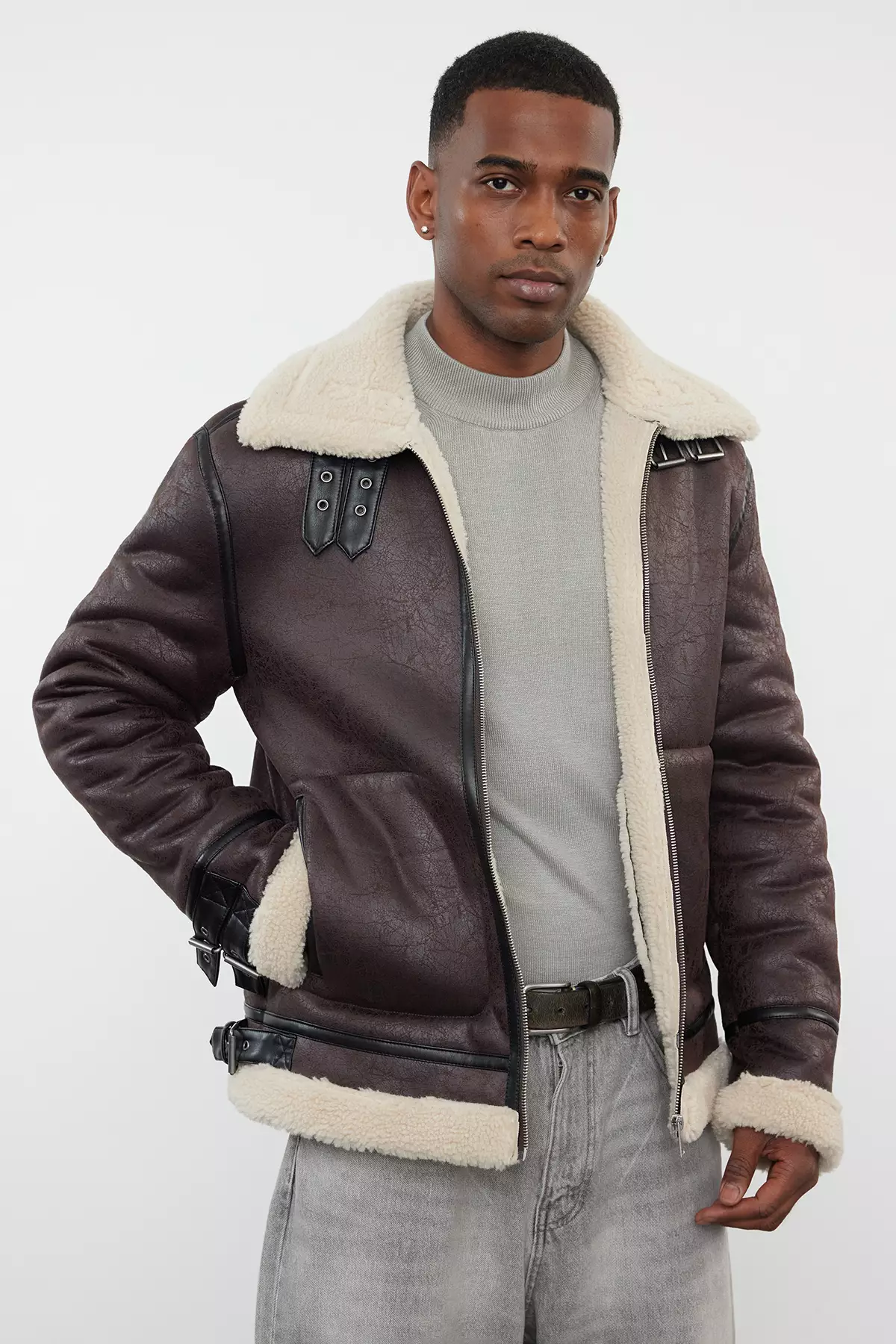 TrendyolMen's Dark Brown Regular Fit Winter Coat With Fur Inside Tmnaw25Mo000134499.003815.00