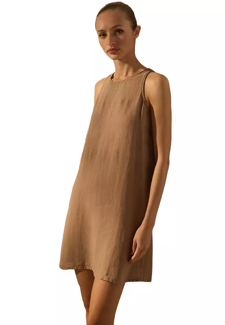 Mink 100% Linen Basic Mini Dress Twoss25El00610