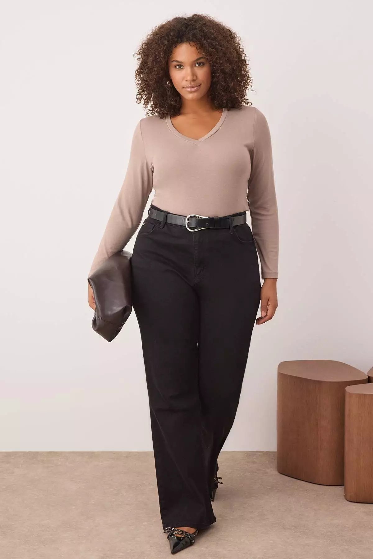TrendyolMink Premium Soft Fabric V-Neck Fitted/Fits Body Flexible Knit Plus Size Blouse1049.00870.00