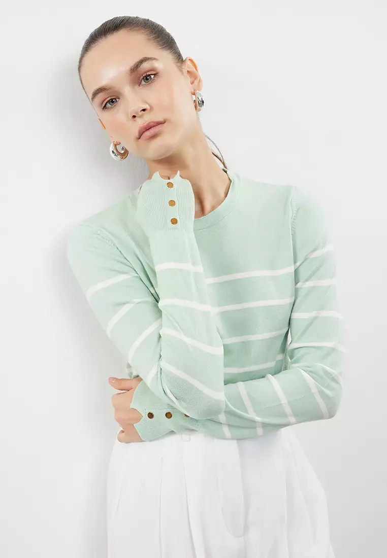 Mint Mercerized Look Premium Yarn / Special Yarn Striped Knitwear Sweater TWOAW23KZ01693