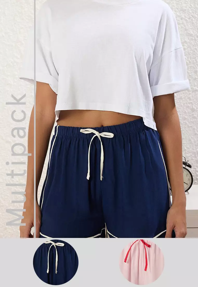 Multi-Colored 2-Pack Tied/Bow and Piping Viscose Shorts Woven Pajama Bottoms THMSS25PJ00012