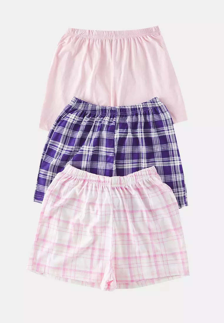 Multicolored 3-Pack 100% Cotton Plaid Knitted Pajama Bottoms THMSS25PJ00016