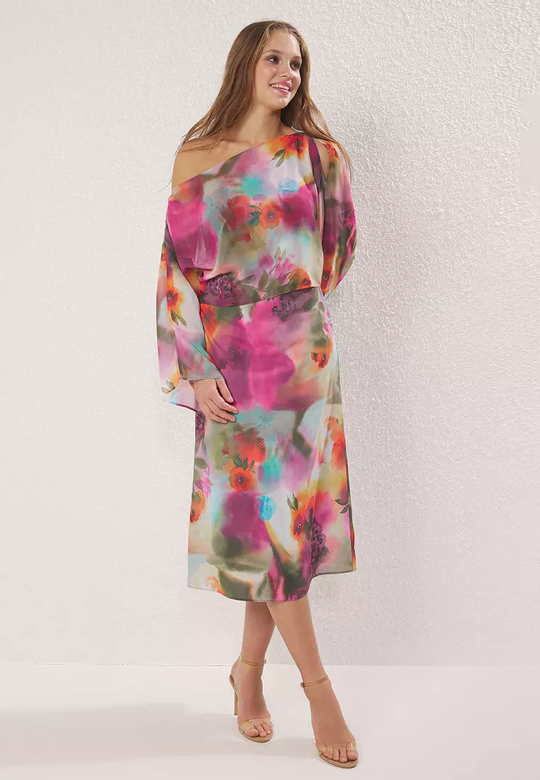 TrendyolMulticolored Abstract Plain Cut Cape Detail Maxi Lined Chiffon Woven Dress TWOSS25EL000143729.002130.90