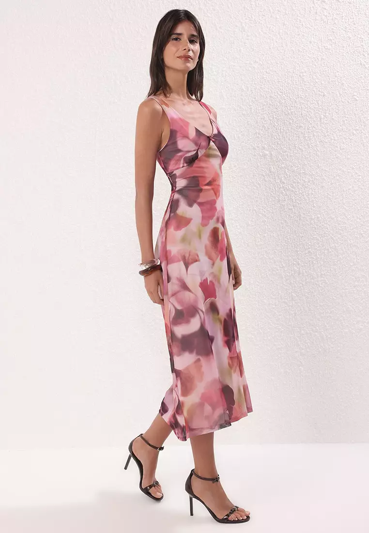 Multicolored Fitted Abstract Bow Maxi Tulle Stretch Knit Dress TWOSS25EL00361