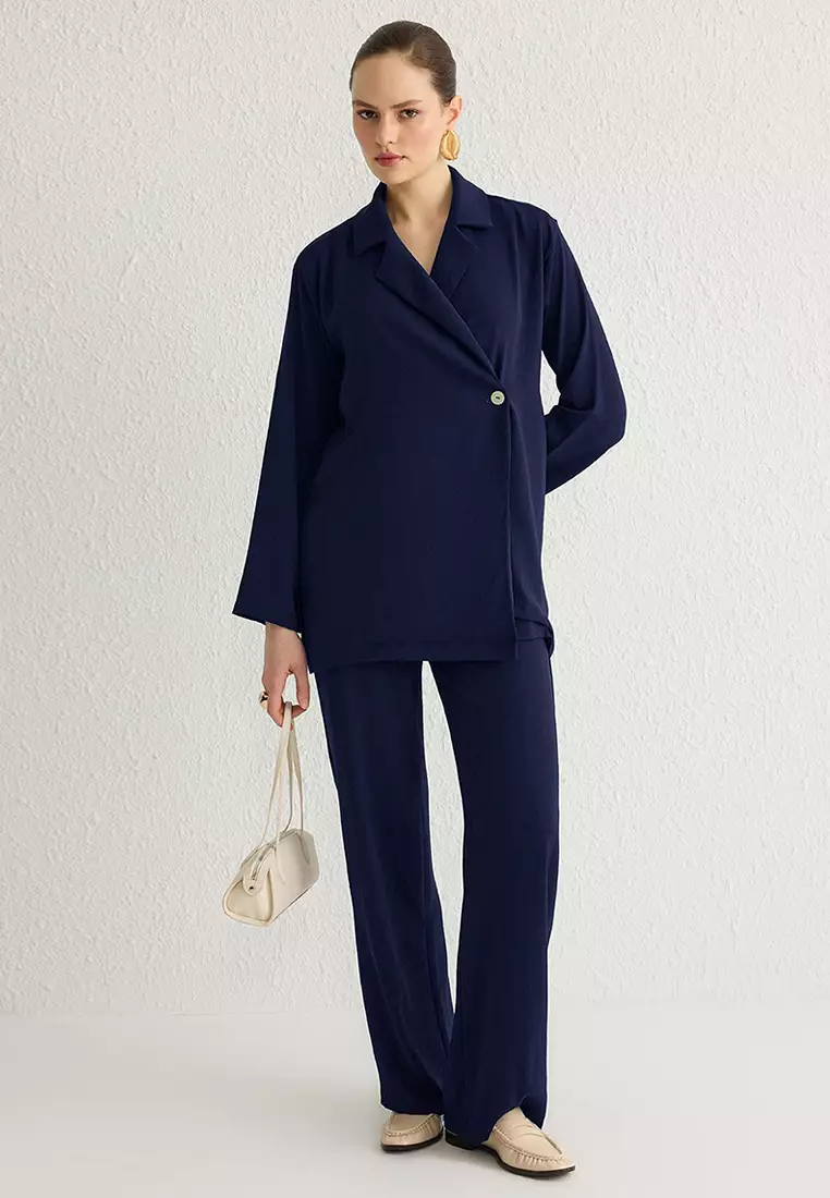 TrendyolNavy Blue Belted Double Breasted Shirt-Pants Woven Bottom-Top Set TCTSS25US000013499.002233.00