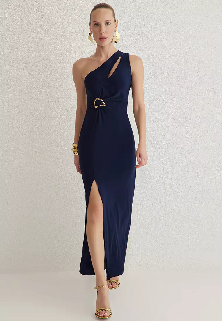 TrendyolNavy Blue Body-fitting Accessory Detailed Knitted Long Elegant Evening Night Graduation Dress TPRSS25AE000162699.001569.00