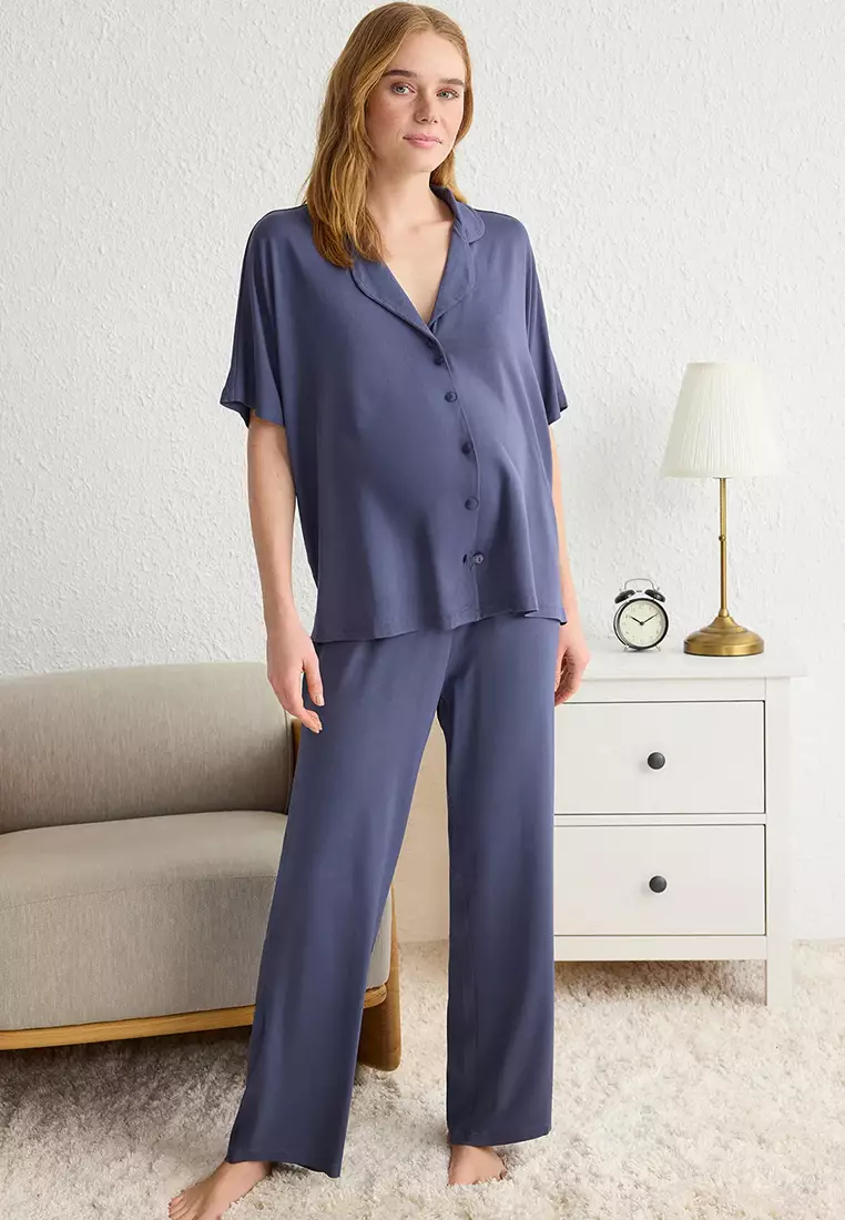TrendyolNavy Blue Comfortable Viscose Maternity Knitted Pajama Set THMSS25PT001651739.001221.00