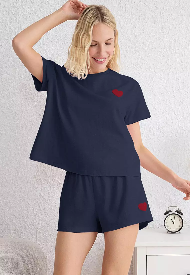 TrendyolNavy Blue Heart Patched Shorts Knitted Pajama Set THMSS25PT001551489.00968.00