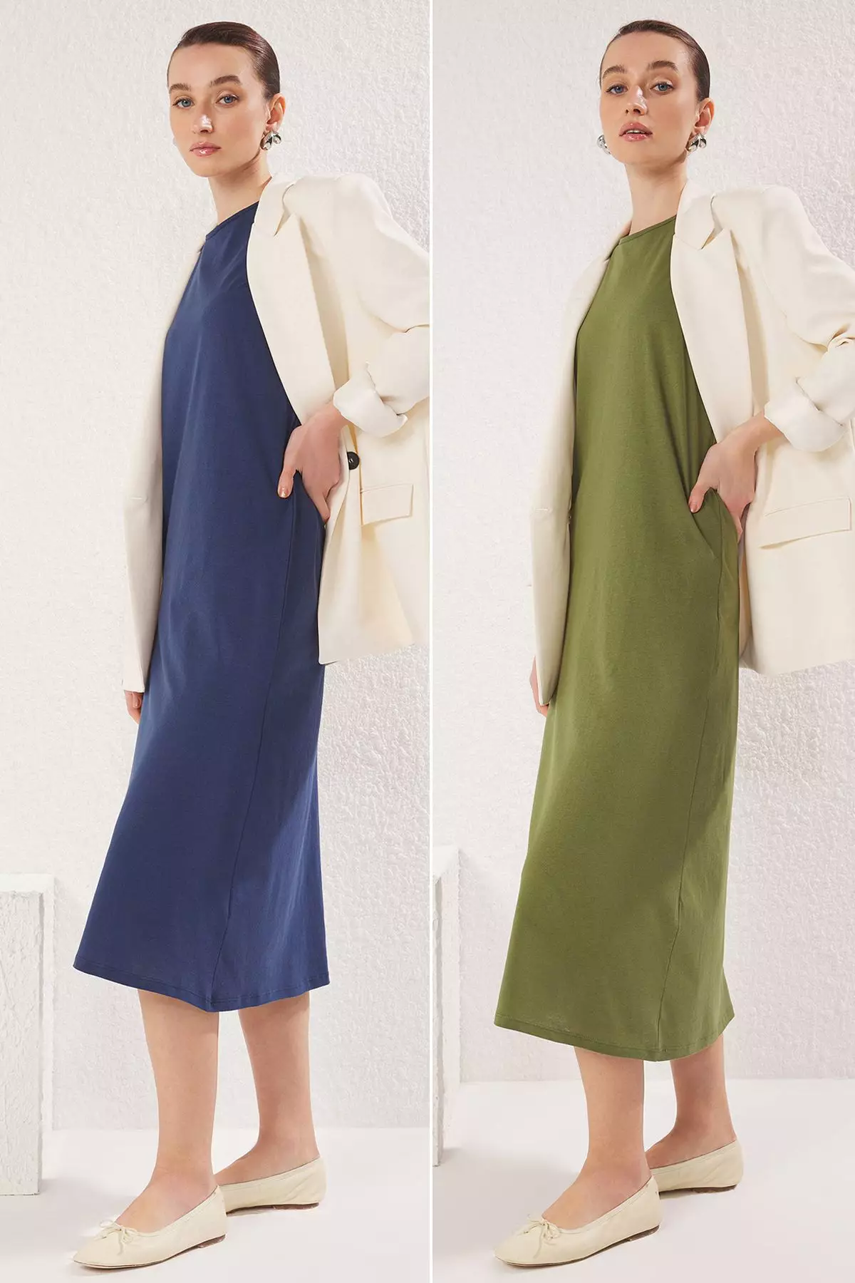 TrendyolNavy Blue-Khaki 2-Pack 100% Cotton Knitted Lining Underwear Dress TCTAW22UK01102899.001561.90