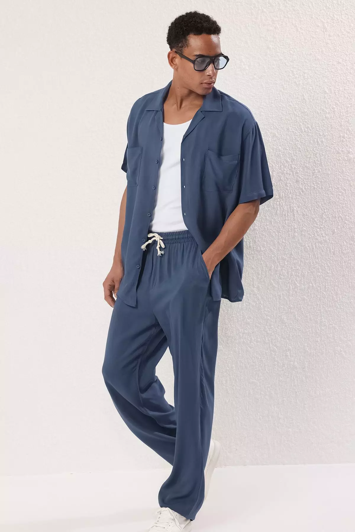TrendyolNavy Blue More Sustainable Regular Fit Low Shoulder Pocket Viscose Summer Shirt TMNSS25GO000051639.001139.00