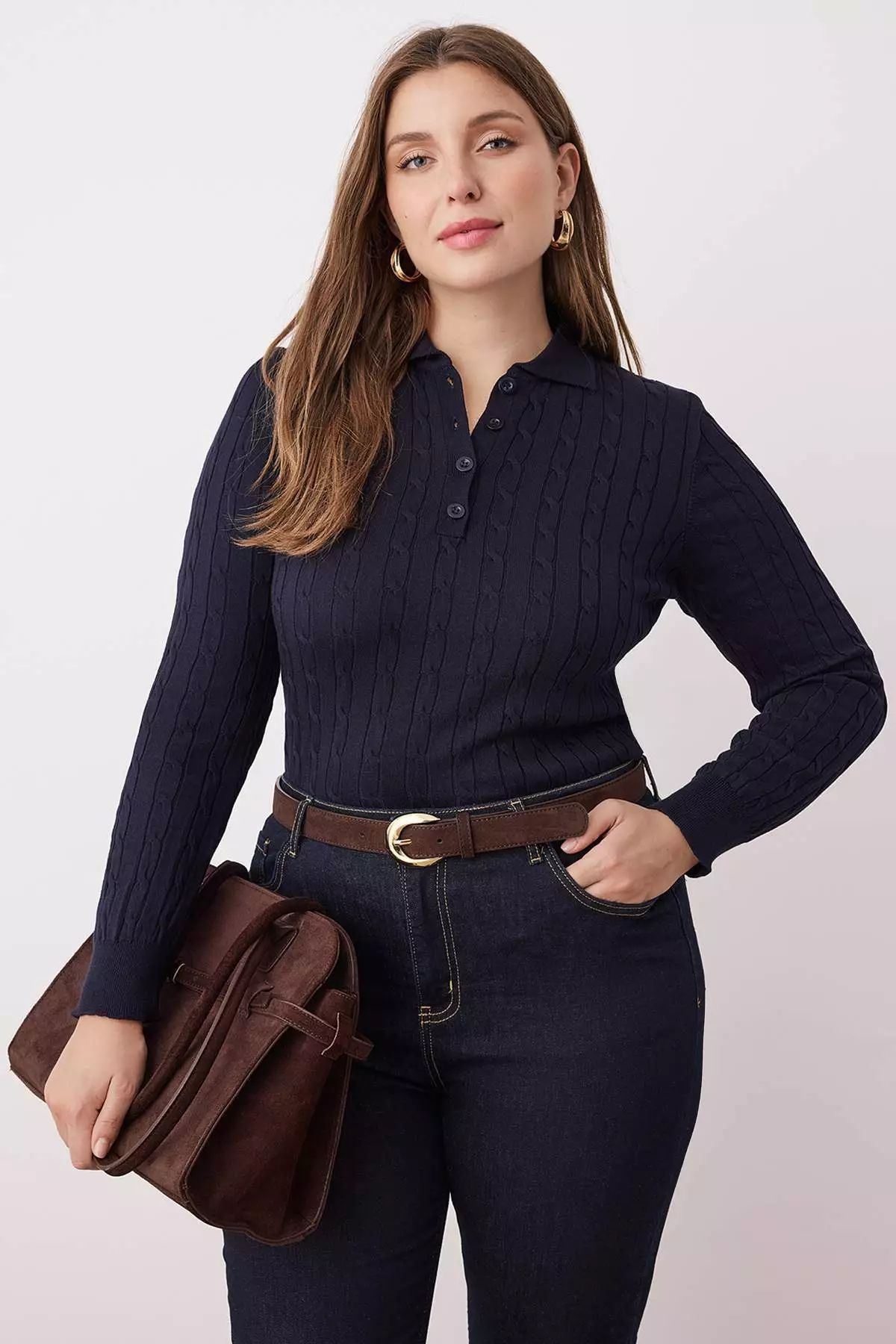 TrendyolNavy Blue Polo Collar Knitted Thin Knit Blouse2009.001319.00