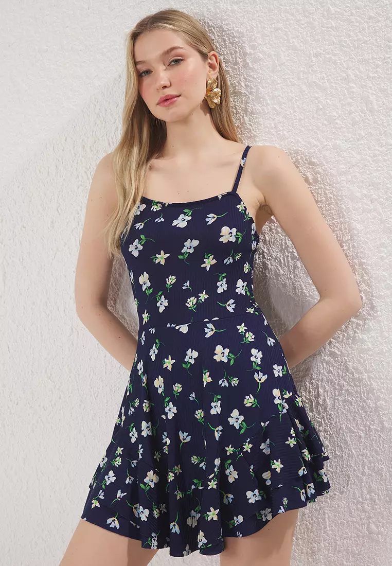 TrendyolNavy Blue Printed Strappy Flounce Shorts Mini Jumpsuit TWOSS23TU000441589.001163.00