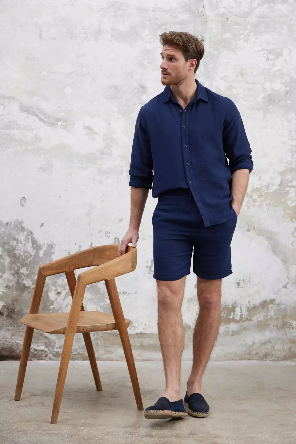 Navy Blue Regular Fit Muslin Fabric Linen Look 100% Cotton Shorts TMNSS25SR00059