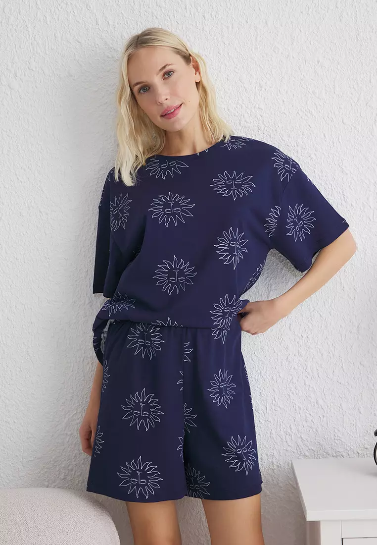 TrendyolNavy Blue Sun Patterned Shorts Knitted Pajama Set1489.001245.90