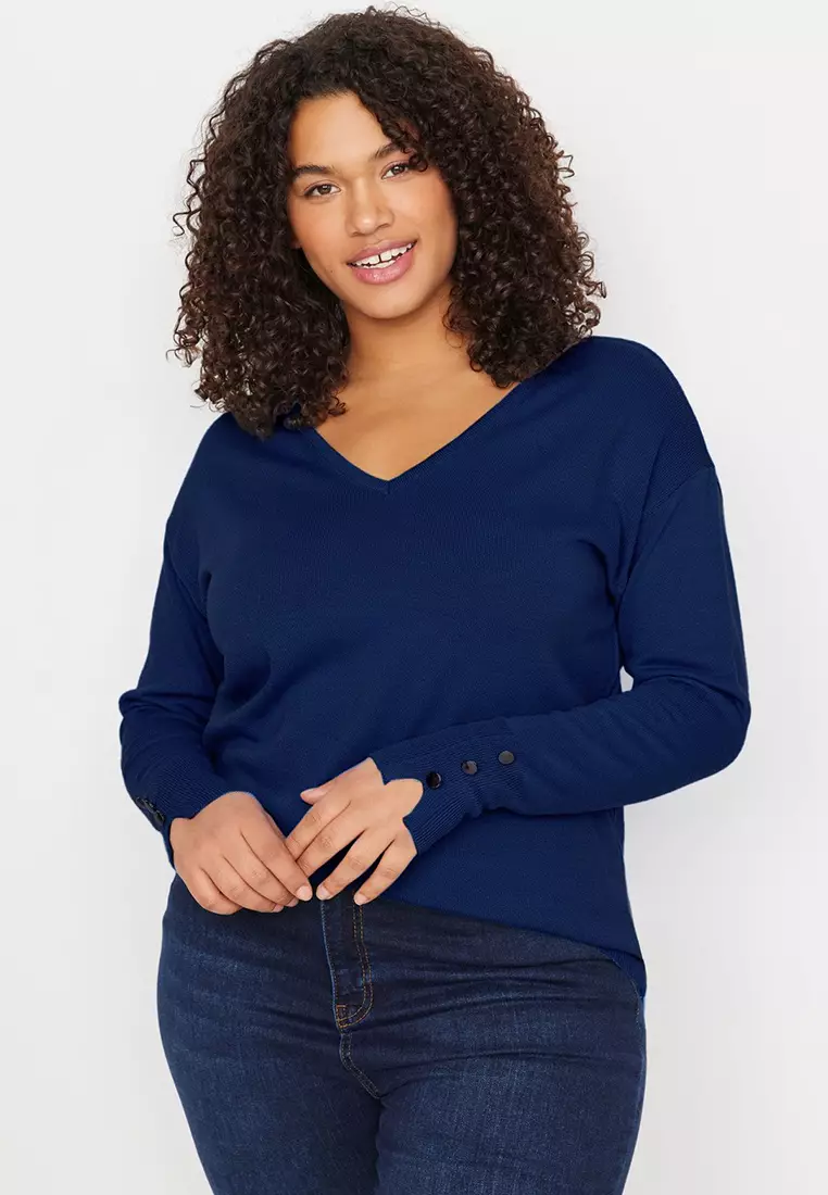 TrendyolNavy Blue V Neck Button Detailed Knitwear Sweater Tbbaw23An000432149.001837.00