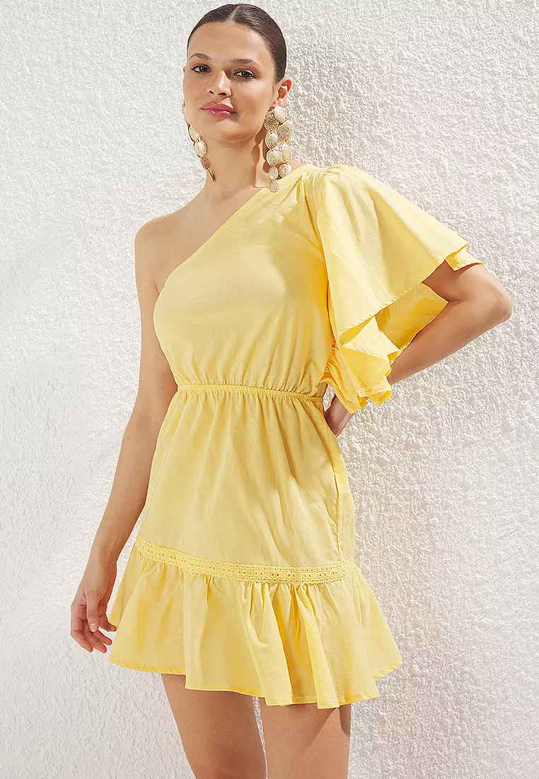 TrendyolOne Shoulder Mini Woven Flounce Beach Dress2029.001490.90