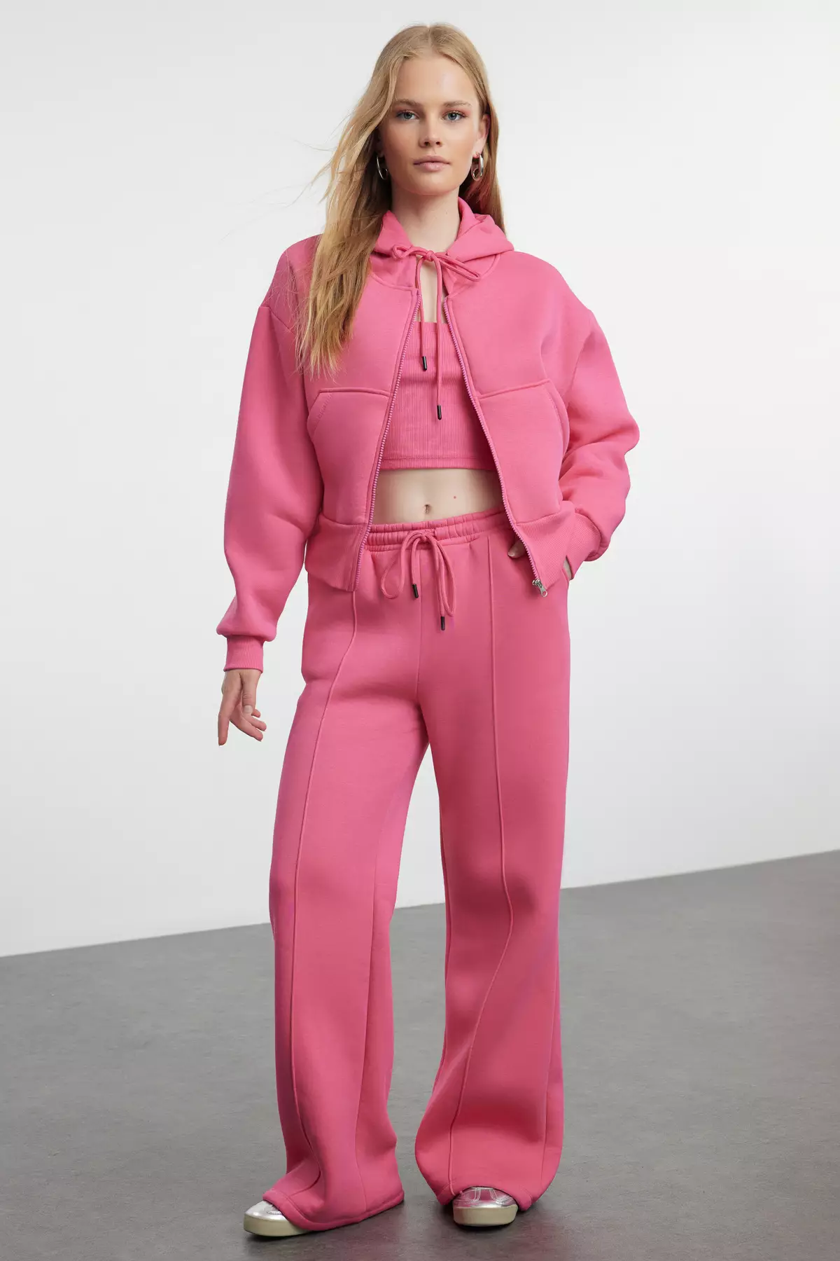 TrendyolPink 3-Piece Fleece Hooded Relaxed Knitted Tracksuit Set Twoaw25Em000074699.003826.00