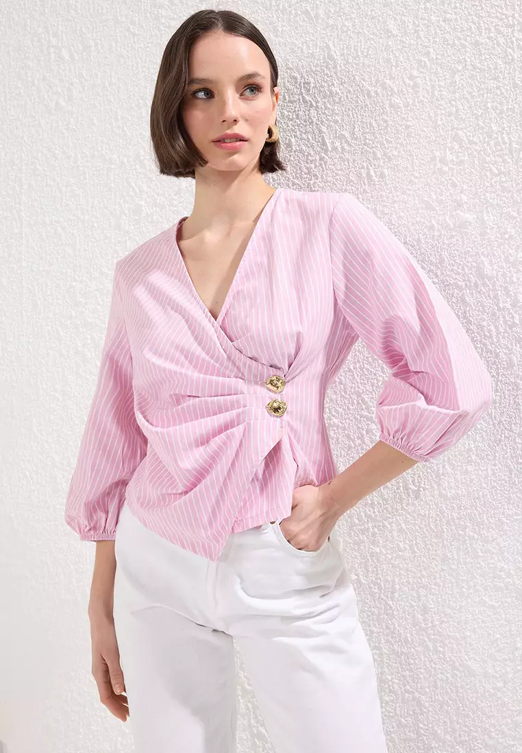 TrendyolPink Double Breasted Striped Woven Blouse Twoss25Bz001704959.001423.00