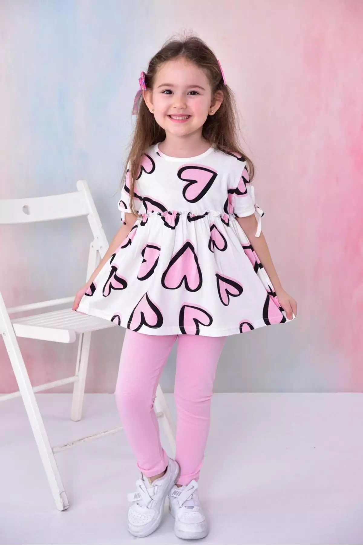 Pink Heart Print T-Shirt And Leggings Set For Girl - Tkdss24Au00032