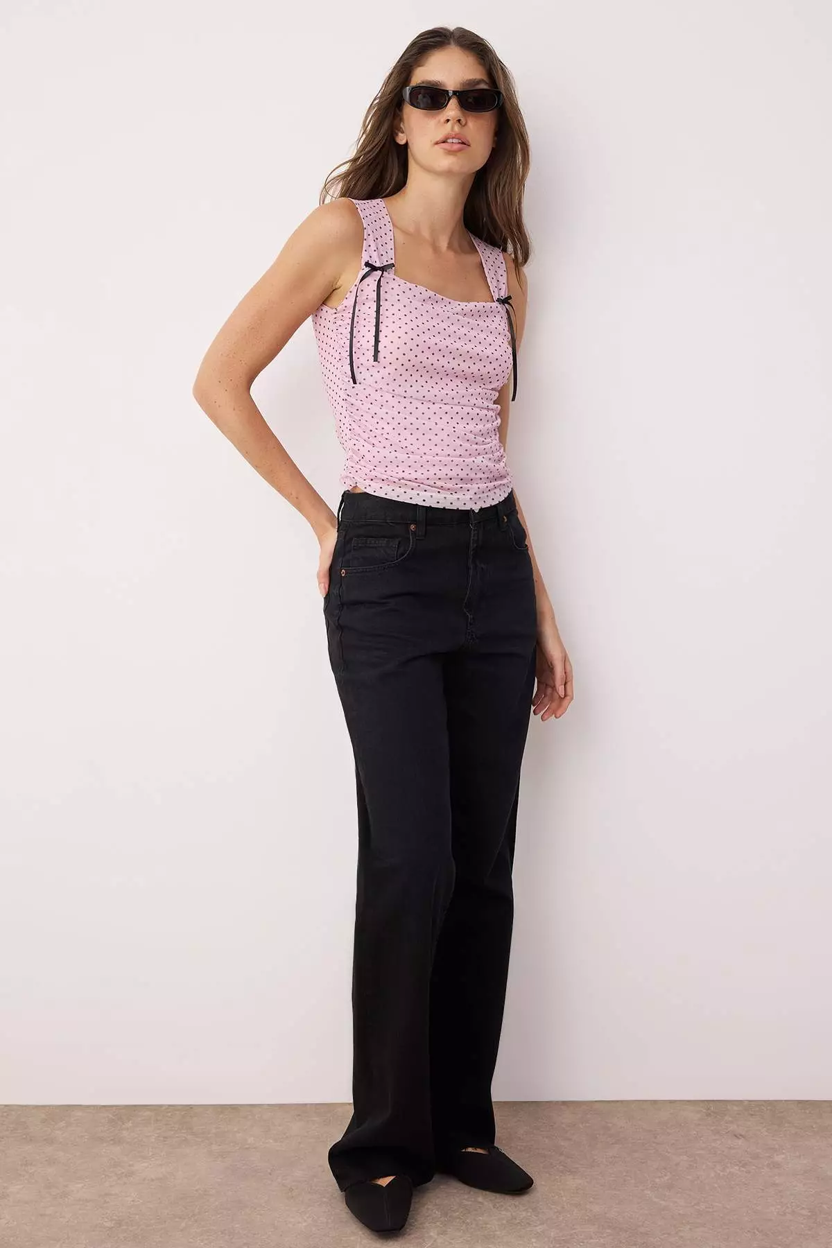 TrendyolPink Polka Dot Lined Printed Tulle Bodycon Crop Bow Detail Knitted Blouse1049.00823.00