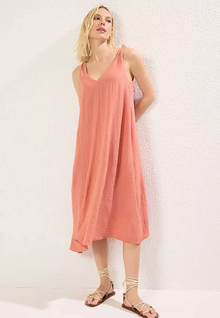 TrendyolPink Relaxed Cut V Neck Midi Woven Dress TWOSS23EL008822159.001413.00
