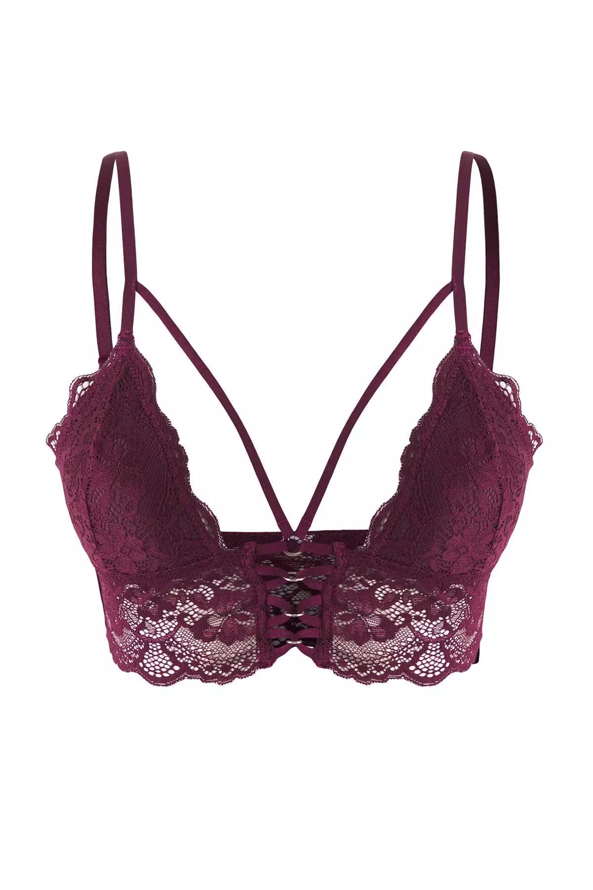 Plum Lace Covered Bustier Knit Bra