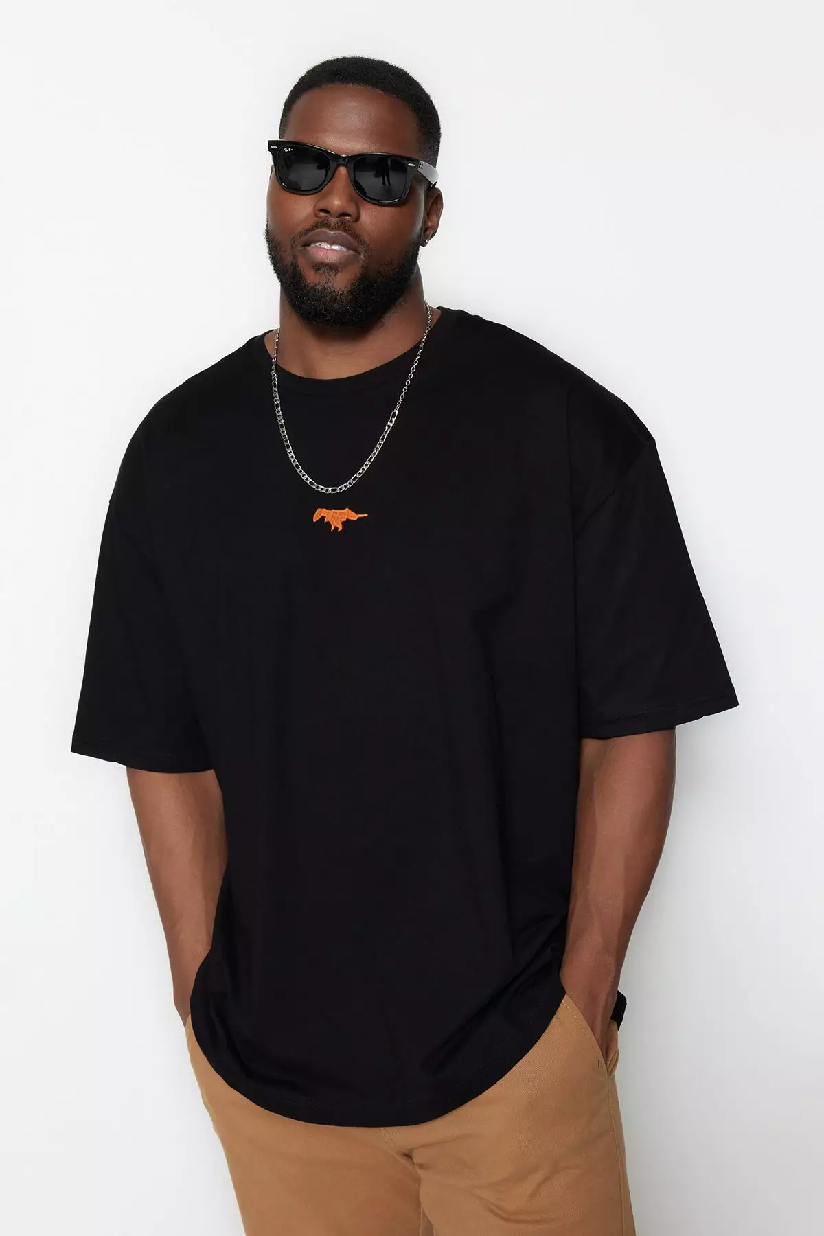TrendyolPlus Size Black Oversize/Wide Cut 100% Cotton Dinosaur Embroidered T-Shirt TMNSS24BF000131109.00879.00