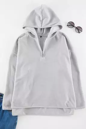 TrendyolPlus Size Grey Fleece Hooded And Zip Sweatshirt - Tbbaw25Ao000302129.001224.00