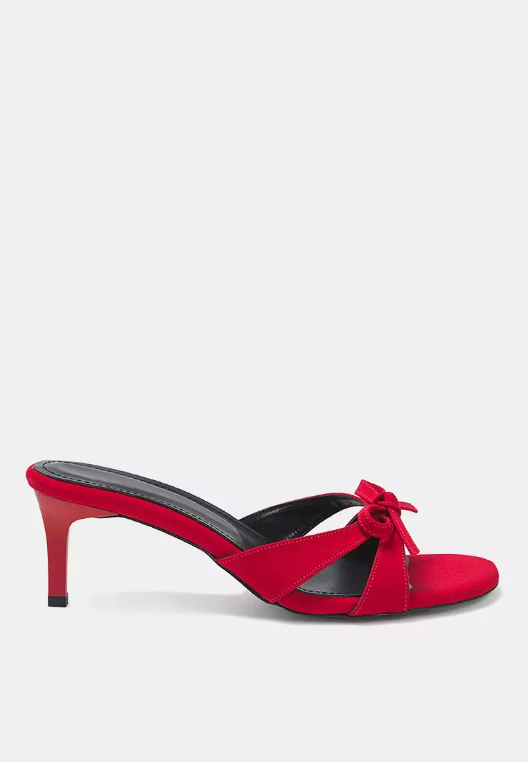 Red Bow Detail Round Toe Women Heels Slippers Takss25To00012