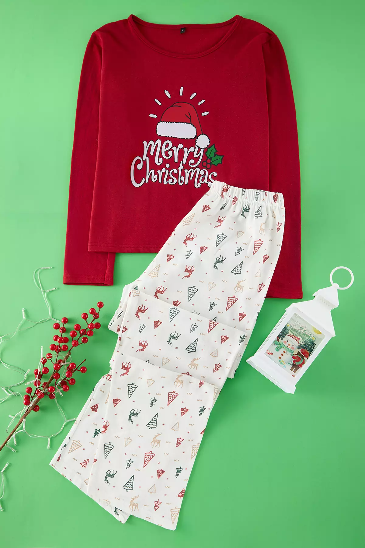 Red Cotton Christmas Themed Knitted Pajama Set Thmaw25Pt00220
