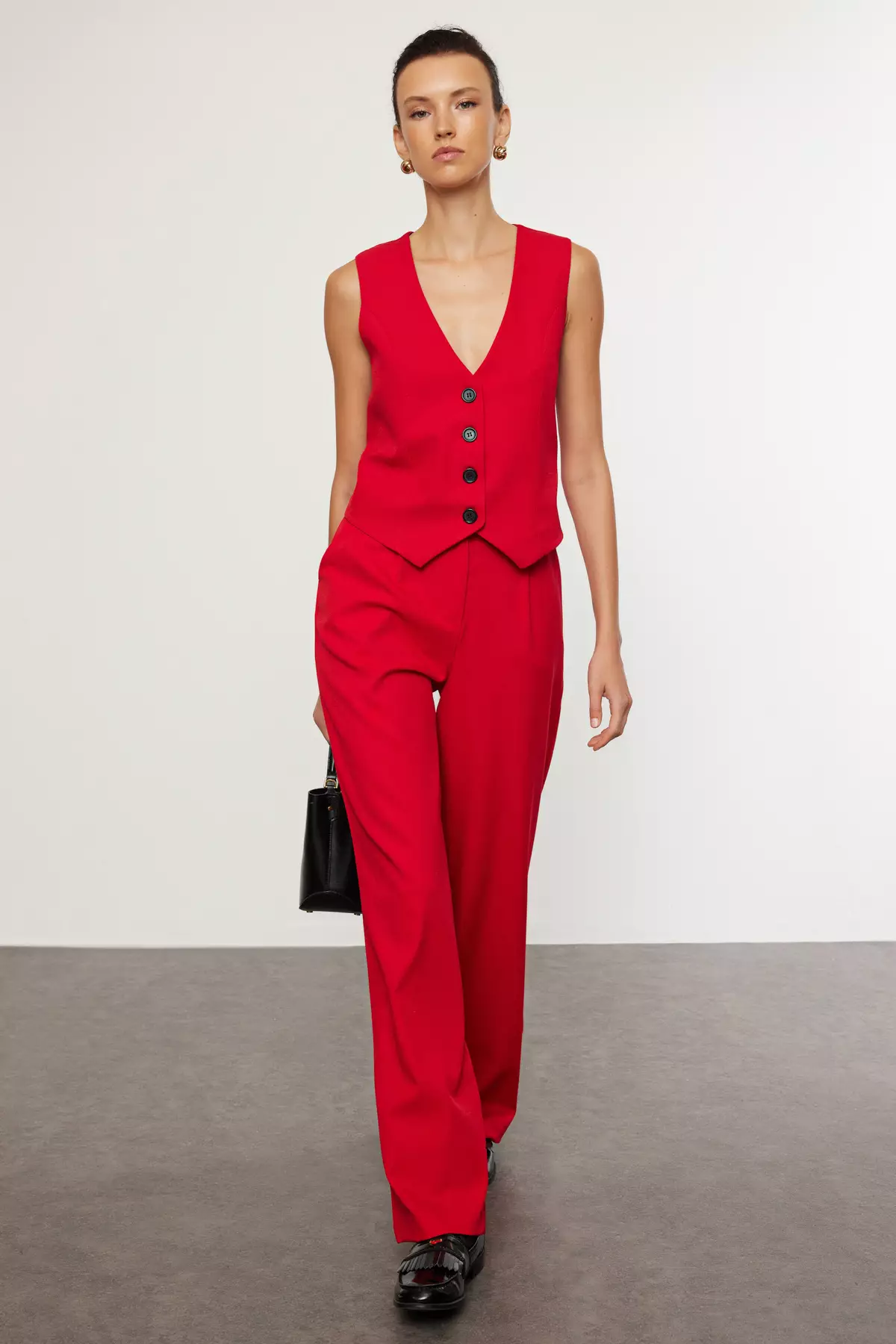 TrendyolRed Regular Woven Vest Wide Leg/Wide Leg Trouser Set Twoaw25Au000914849.002802.03