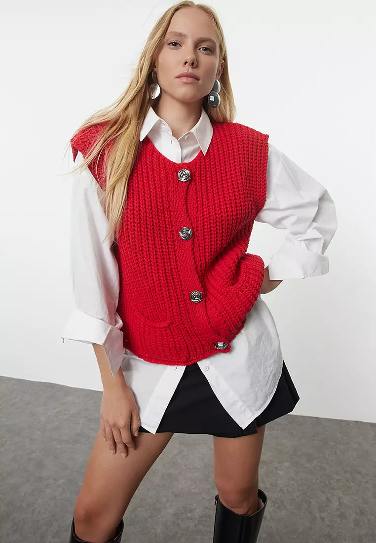TrendyolRed Soft Textured Fitted Vest Twoaw25Ye000272109.001390.00