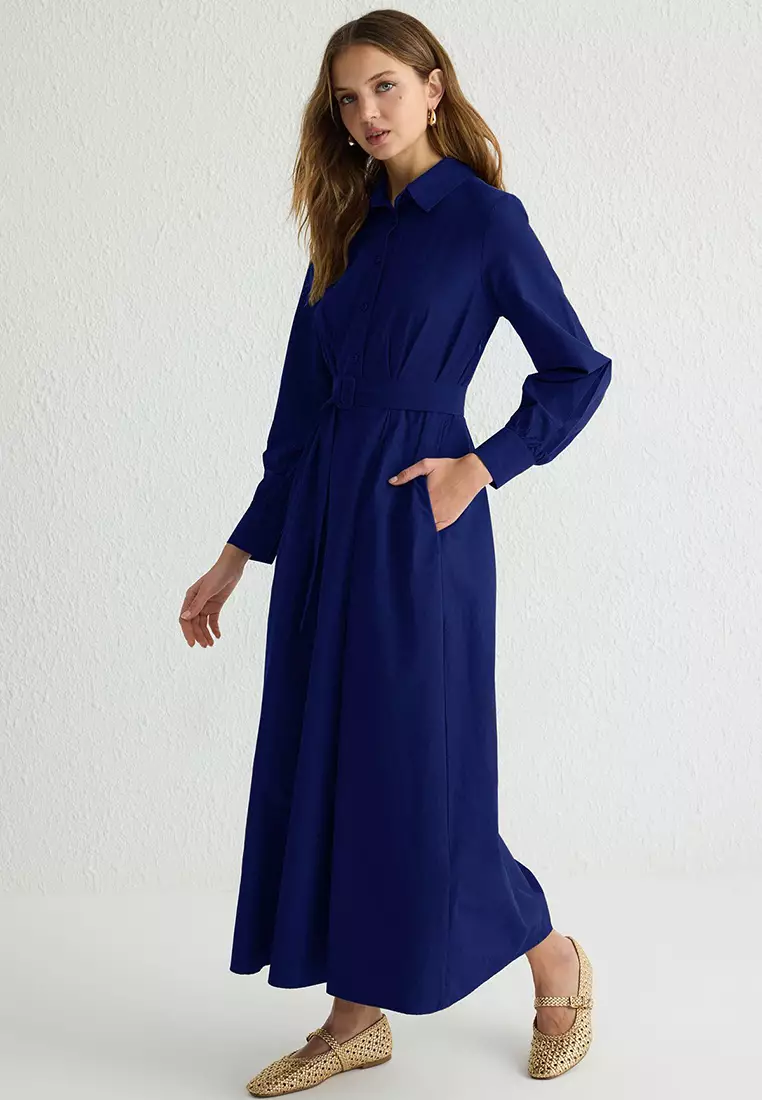 TrendyolSaxe Shirt Collar Fabric Belted Woven Dress Tctss25Eb000063259.00