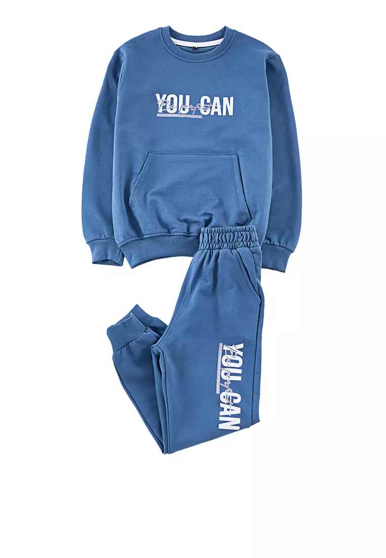 Slogan Printed Knitted Boys Sweatshirt and Sweatpants Bottom-Top Set